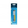 • corp ergonomic, cauciucat si decupat, pentru confort maxim la scris• clema lata, varful si butonul sunt metalice • grosime de scriere: 0,7 mm (XB) • culoarea de scriere este indicata pe corpul bleu • 30 buc./display in culori asortate