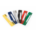 Confectionata din plastic rezistent. Perforatii standard la 60 si 80 mm. Dimensiuni: 34x150 mm. Diferite culori: negru, rosu, galben, verde, albastru. Ambalare: 25/set; 10 seturi/cutie