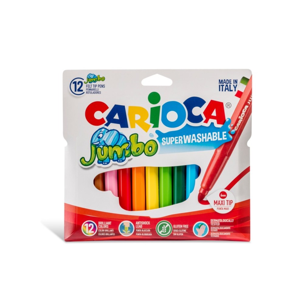Carioca super lavabila, varf gros 6 mm, 12 culori/cutie, CARIOCA Jumbo