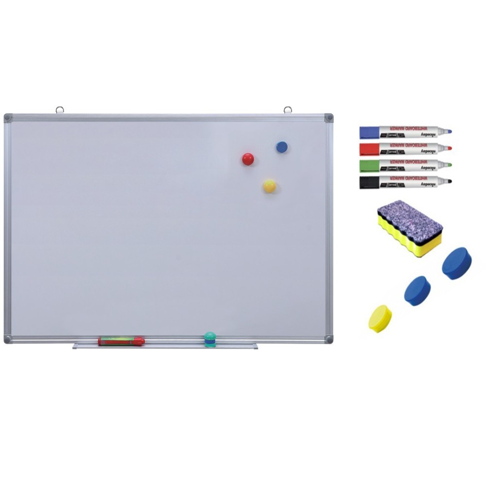 | Dotari | se livreaza cu accesoriile necesare montarii pe perete si tavita pentru markere, se pot folosi magneti divers colorati, scrierea se face cu markere lavabile iar stergerea cu burete uscat |