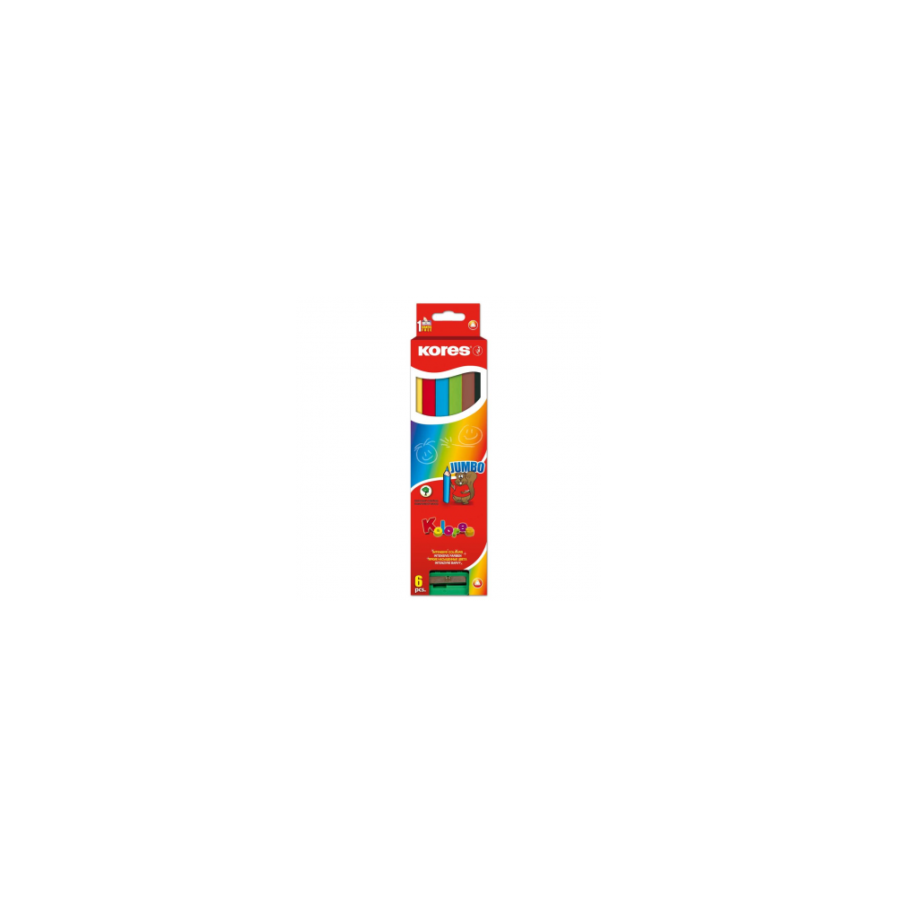 Creioane colorate marime Jumbo, cu mina super soft, ideale pentru pre-scolari. Mina extra thick 175% mai multa culoare si extra pigment pentru culori intense . Lemn de calitate superioara pentru o ascutire usoara. Setul include o ascutitoare gratis. Forma triunghiulara ergonomica. Disponibil in pachete de 6 si 12 creioane