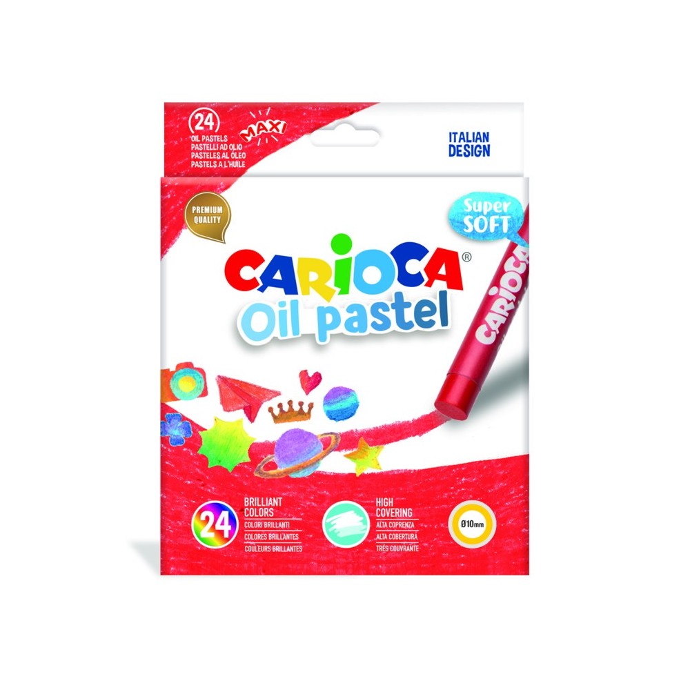 Creioane cerate rotunde, 24 culori/cutie, CARIOCA Oil Pastel Crayons Maxi