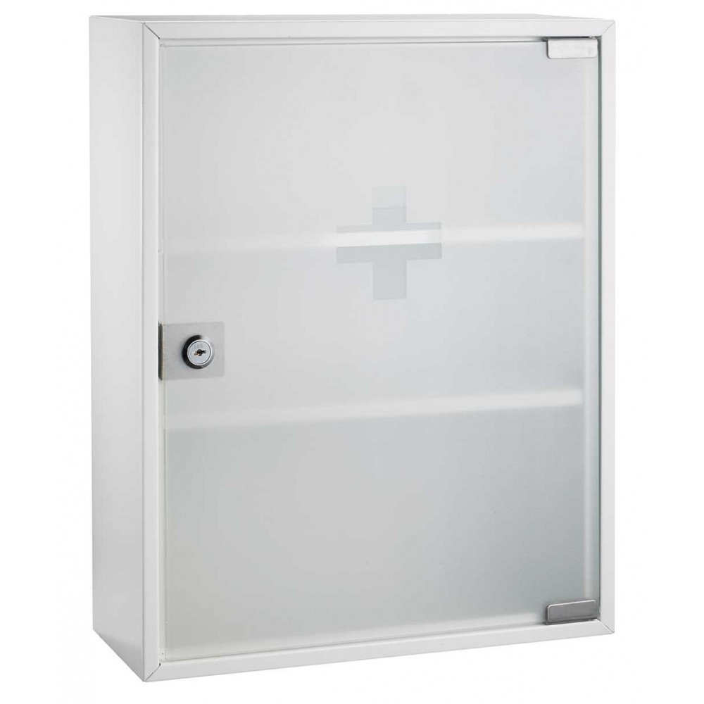 Cutie metalica de prim ajutor, dimensiuni 36 x 32 x 10cm, usa sticla, ALCO - alba Mărește