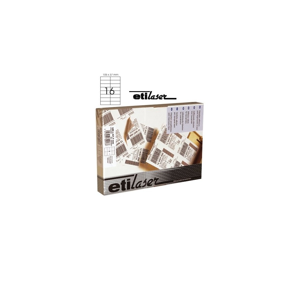 •Etichete autoadezive 16/A4, ETILASER - pretaiate pe format A4 (210 x 297 mm) si pot fi tiparite cu imprimanta laser, inkjet, copiator sau scrise de mana.