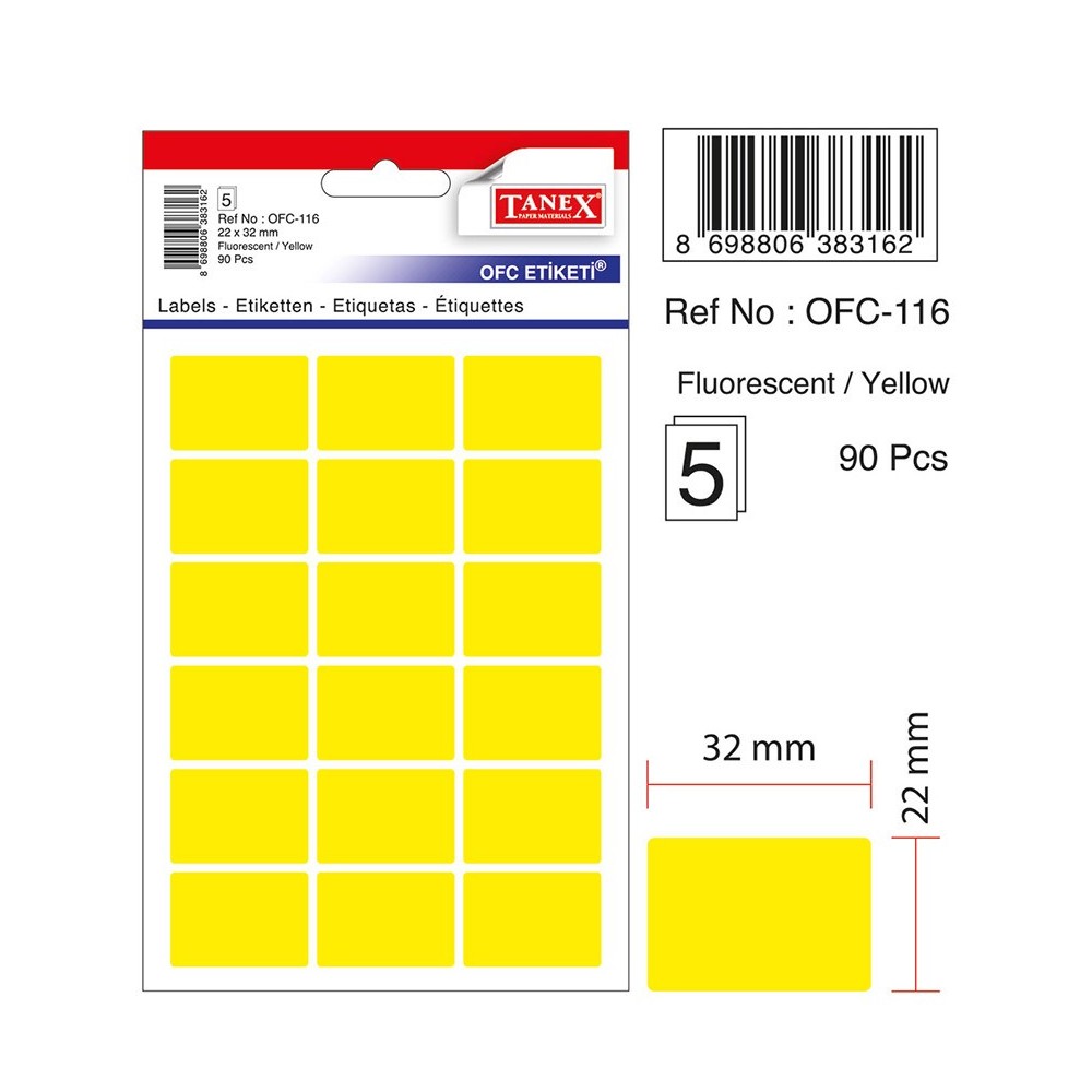 Etichete autoadezive color, 22 x 32 mm, 90 buc/set, TANEX - galben fluorescent