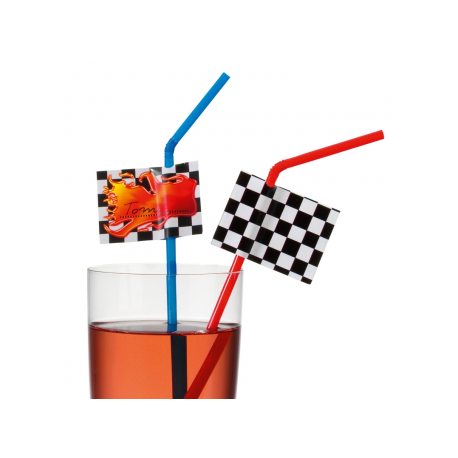 Paie flexibile, susycard party picknick, racing, compuse din plastic si hartie, lungime 24cm,personalizate, albastru si rosu, 10 bucati in polybag