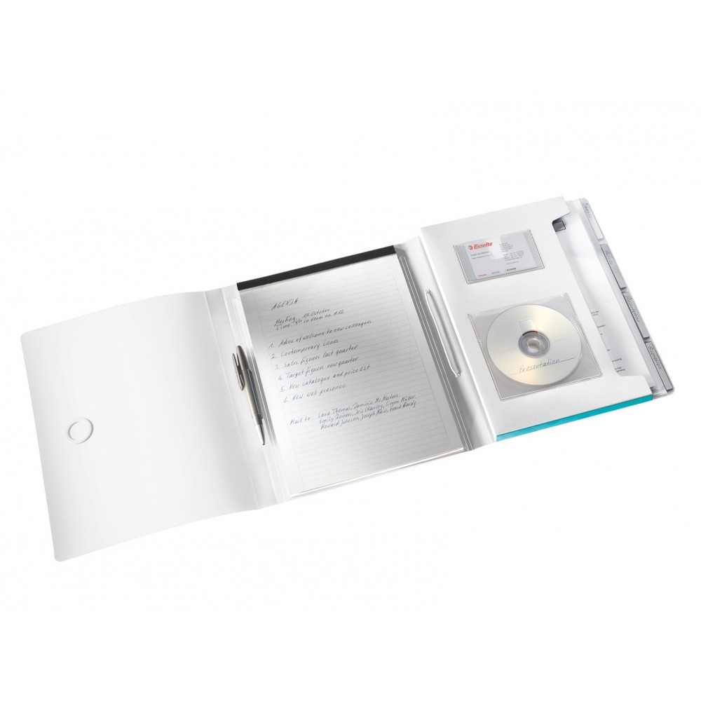 •Dotata cu suport pentru instrument de scris si caiet de notite, dictando, A4, cu 40 foi microperforate.
