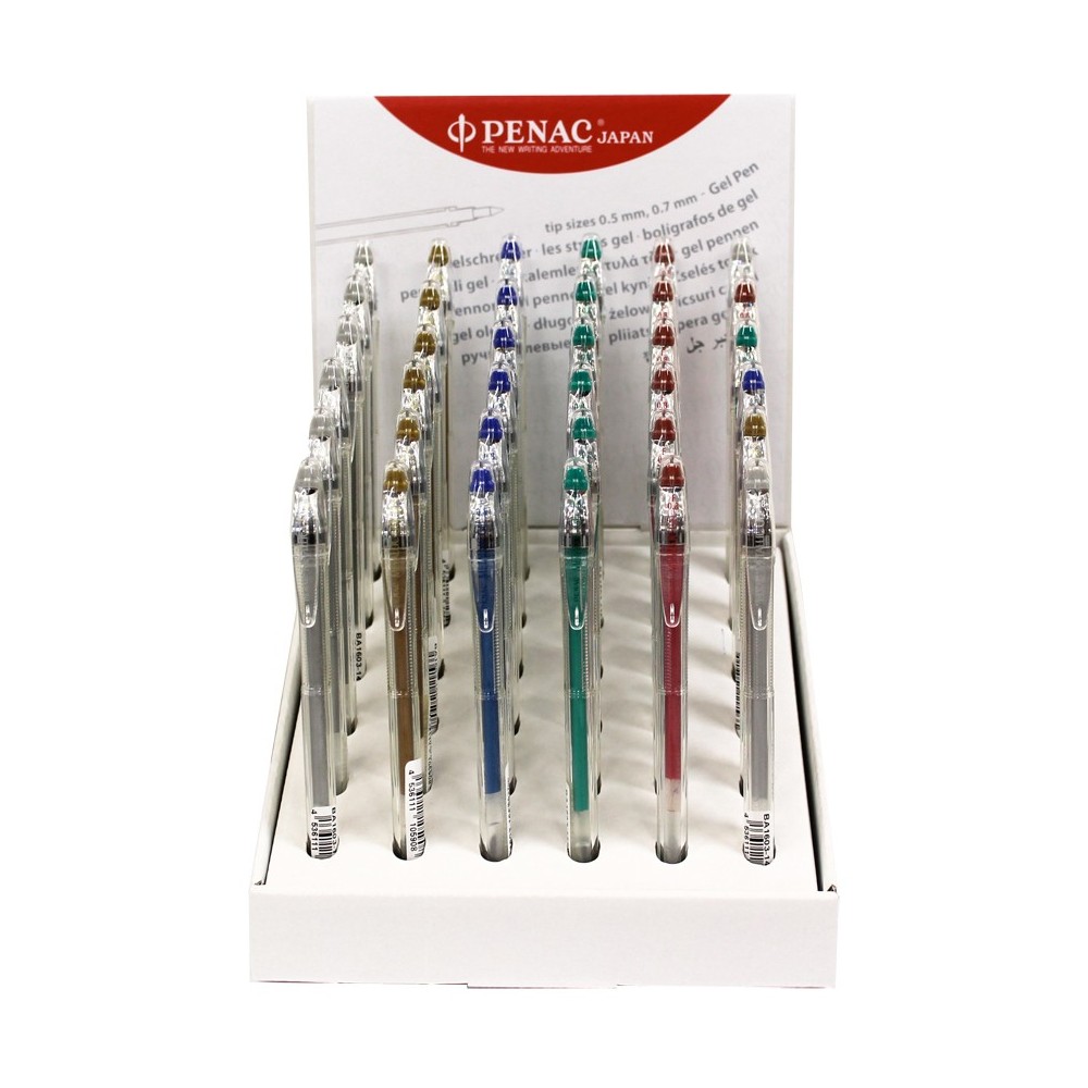 Reduceri! Display pixuri cu gel PENAC FX-3 Metalic, 0.8mm, 36 buc/display - culori asortate Mărește