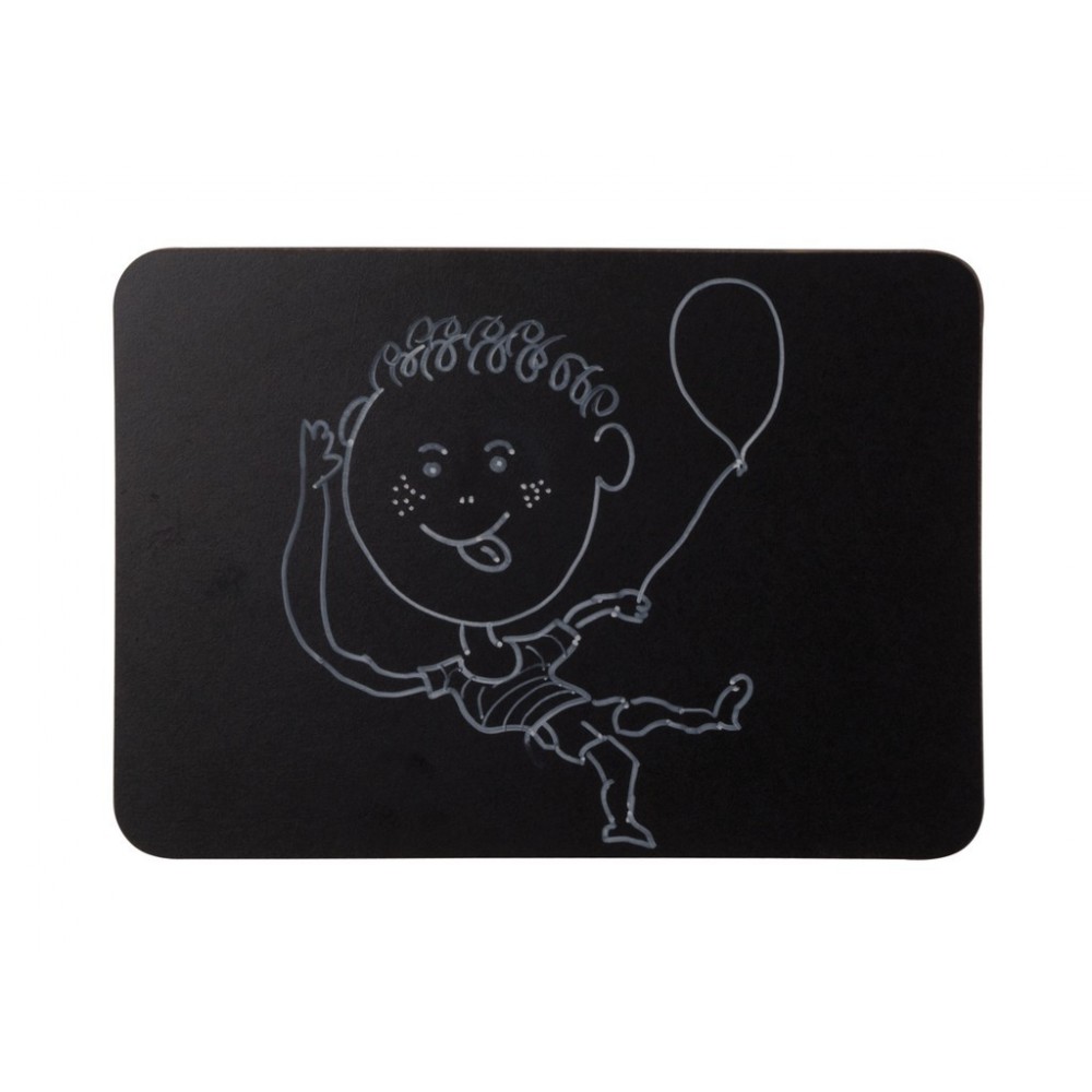 Excelentă pentru exersarea scrierii pe tablă, pentru rezolvarea unor exerciții, pentru desen sau pentru joacă, această „tăbliță” amintește de primele suprafețe de scriere folosite de elevi la școală. Pentru scriere sau desenare se pot folosi Deco Markere
