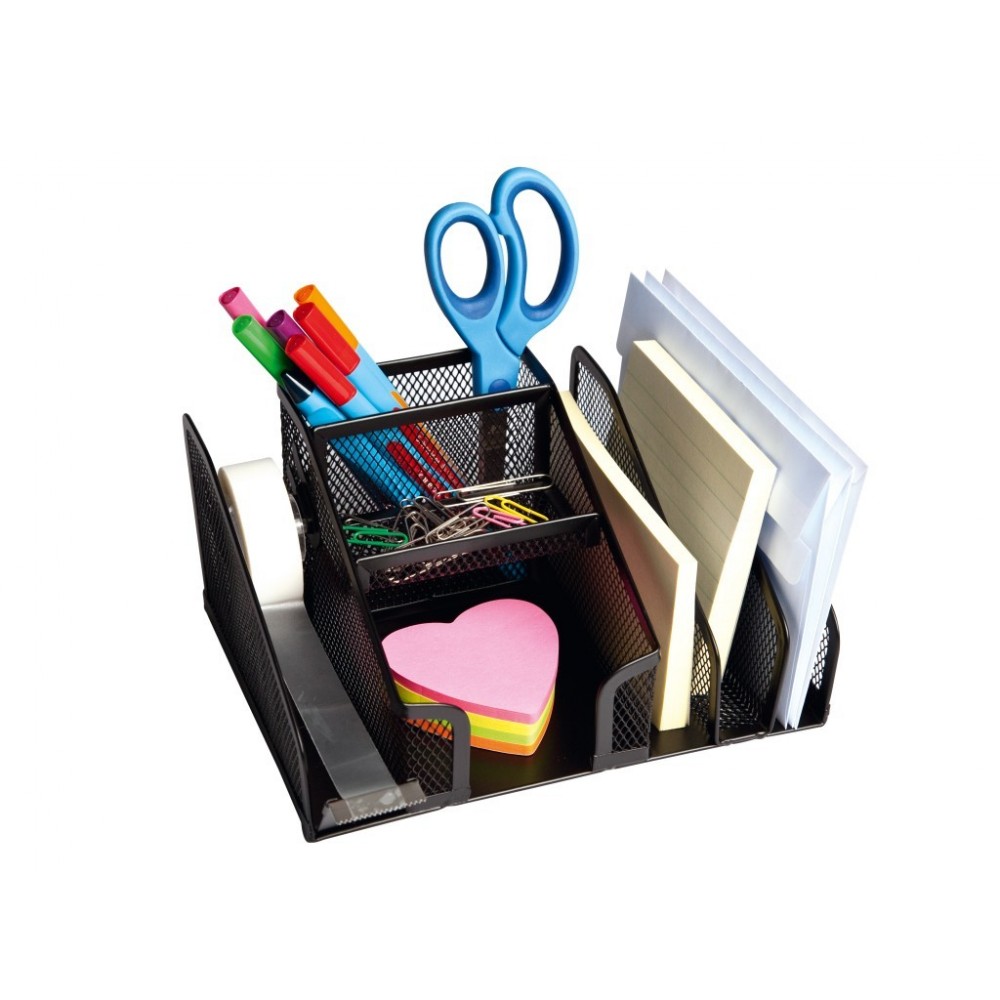 Suport compartimentat pentru păstrarea ordonată a articolelor mici de birou.