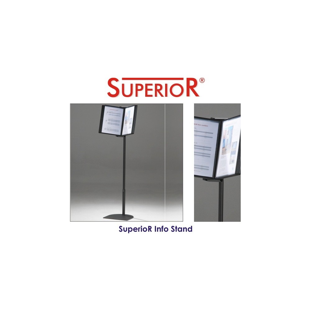 • Info Stand este potrivit pentru receptii, birouri de receptie sau hoteluri unde poate expune informatia intr-un mod elegant, flexibil. inaltimea de la 110 cm pana la 130 cm. Disponibil in culorile: gri-deschis sau negru.