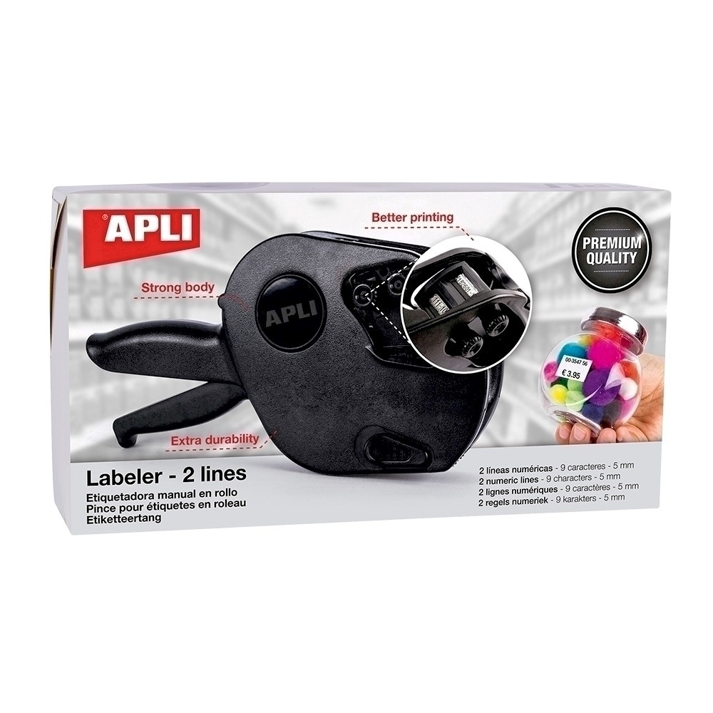 Marcator manual Apli, 9 caractere, 2 linii, etichete 26 x 16 mm