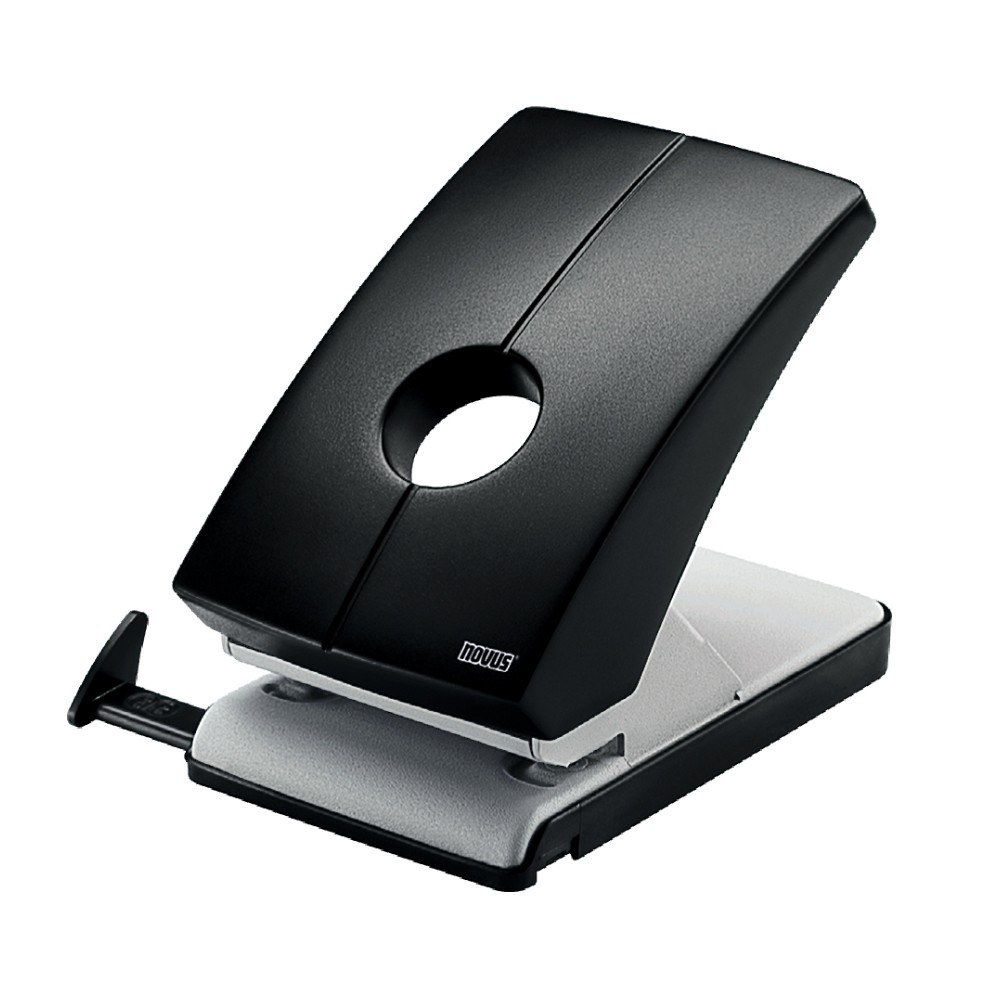 Baza din metal, clapa din metal, acoperita cu plastic de o foarte buna calitate. Culoare: gri cu negru. Capacitate de perforare: 40 coli. Distanta intre perforatii: 80 mm. Prevazut cu distantier. Sistem de blocare a clapei.