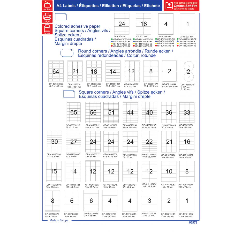 • Numar etichete pe coala: 70.