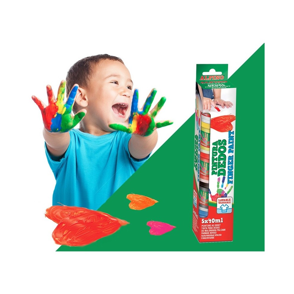 Tempera lavabila, pentru pictura cu mana, 5 culori x 40ml/set, ALPINO Finger Paint