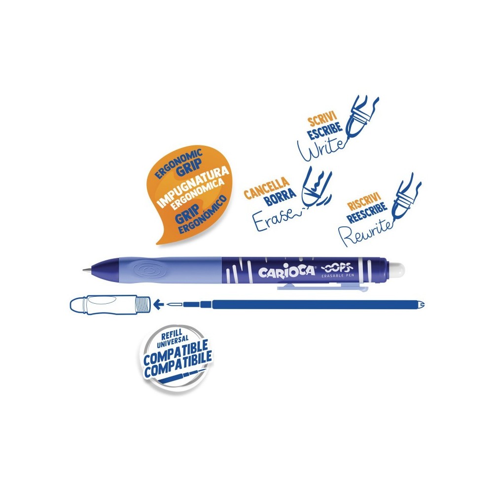 Pix erasable, 0.7mm, retractabil, CARIOCA Oops - albastru