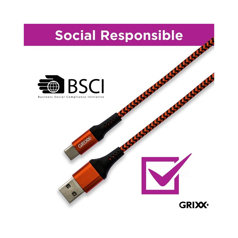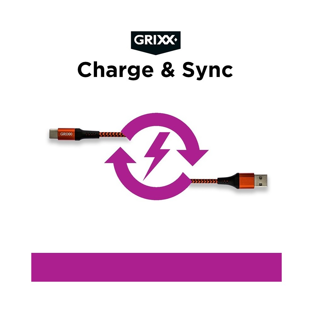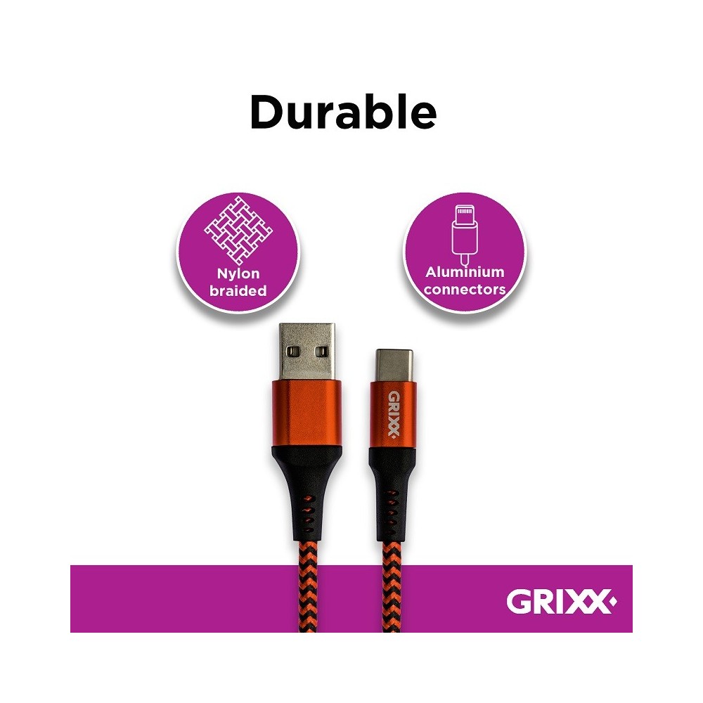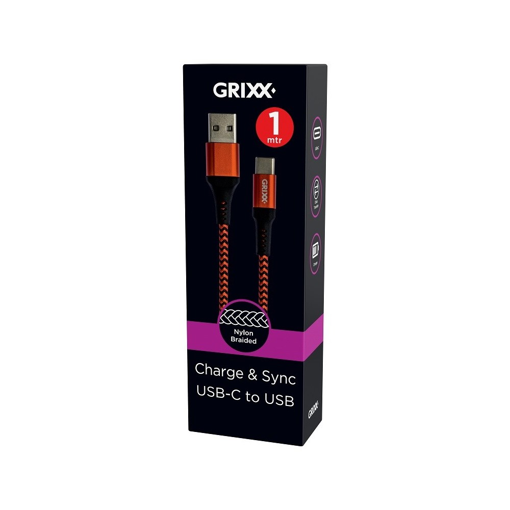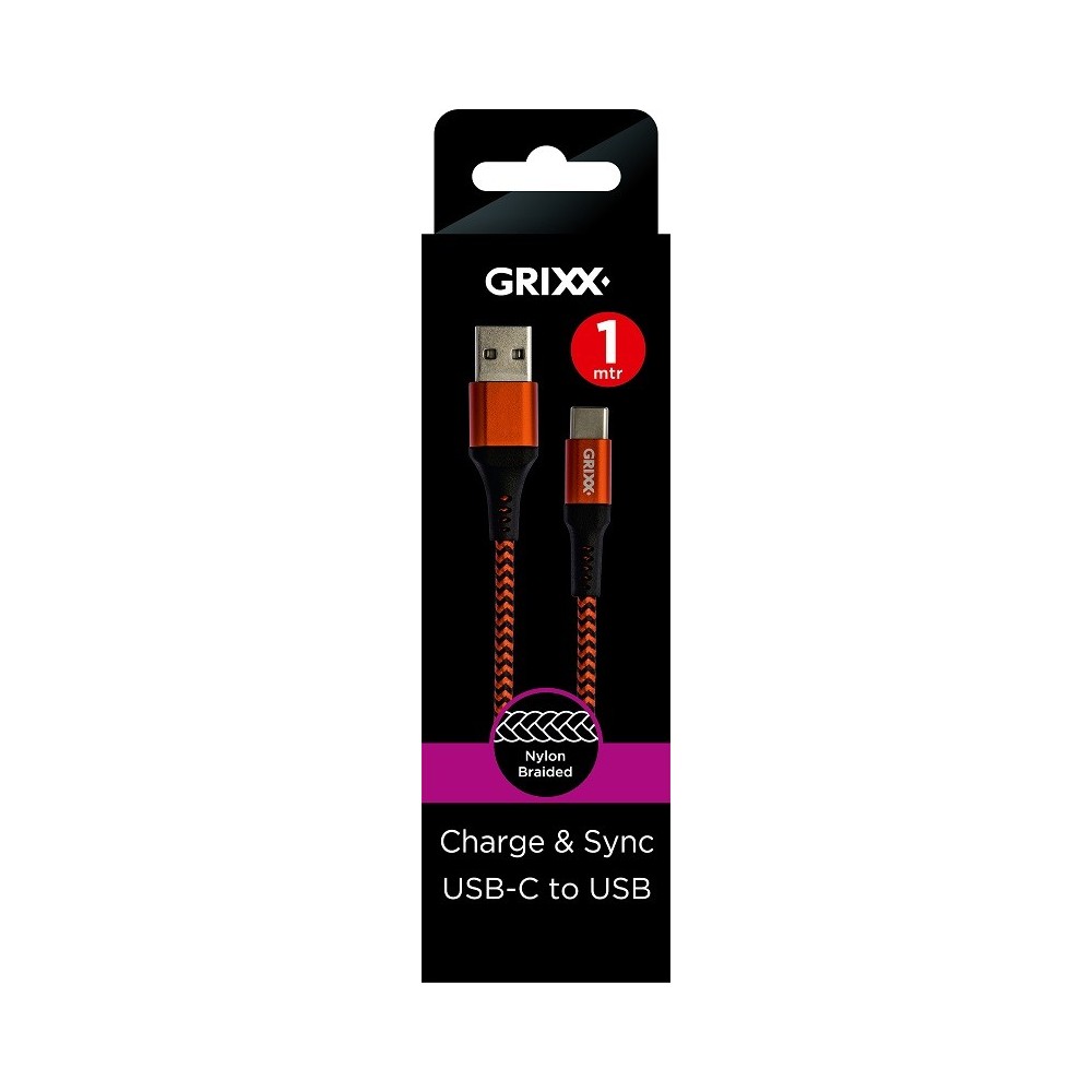 Cablu date GRIXX - USB-C to USB, impletit, lungime 1m - rosu/negru