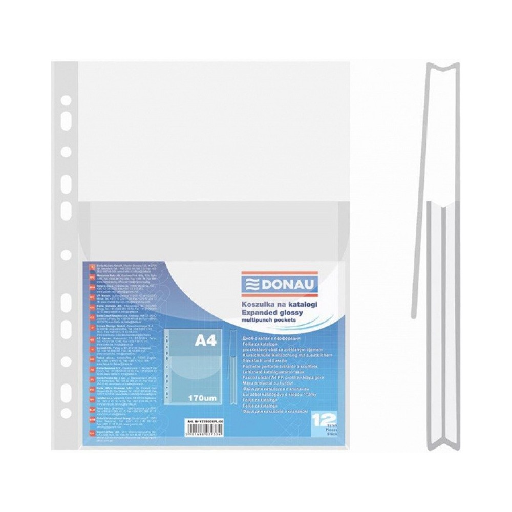 Folie protectie documente A4, cu burduf 20mm, PP - 170 microni, cu clapa verticala, 12/set, DONAU Mărește