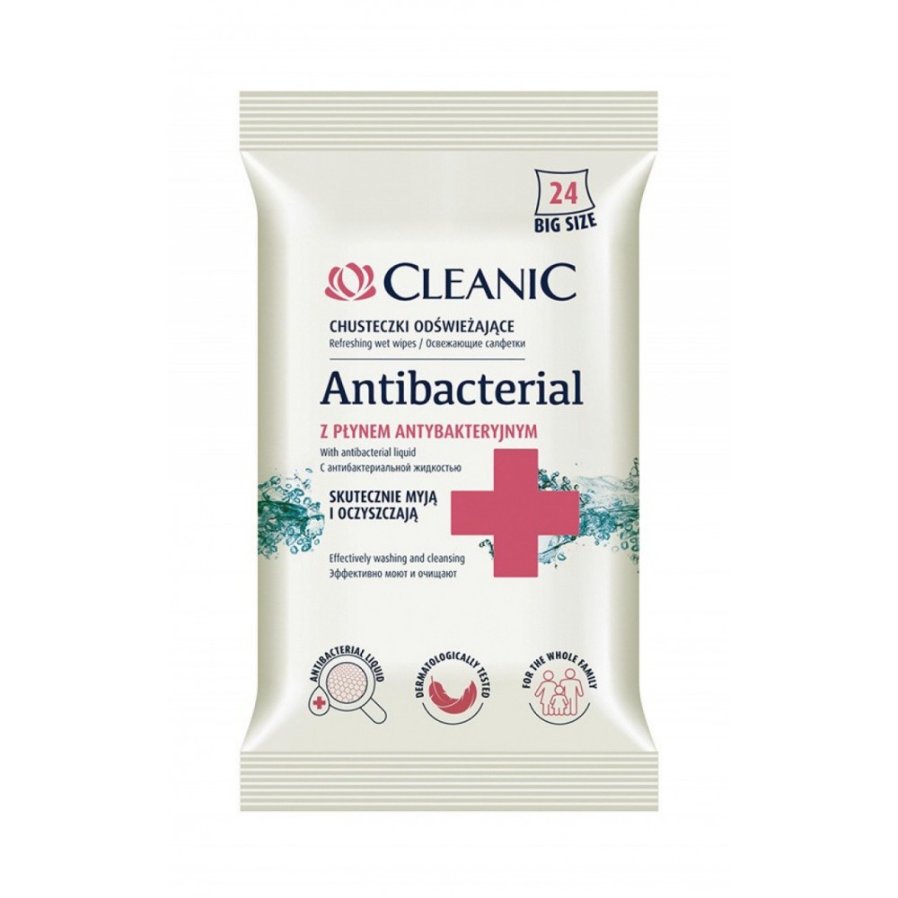 Servetele umede CLEANIC, antibacteriene, recomfortante, 24 buc/pachet, pentru maini si corp
