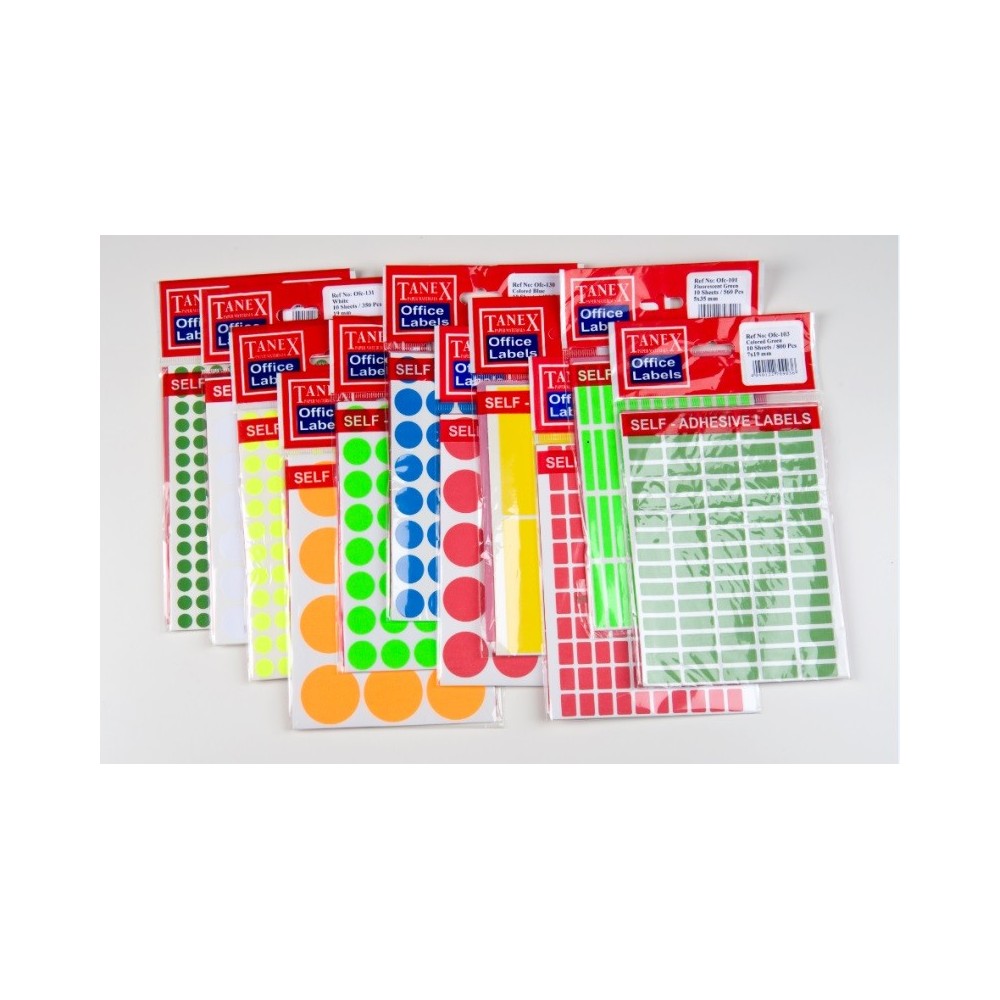• Etichete autoadezive color cu diametrul de 8 mm.