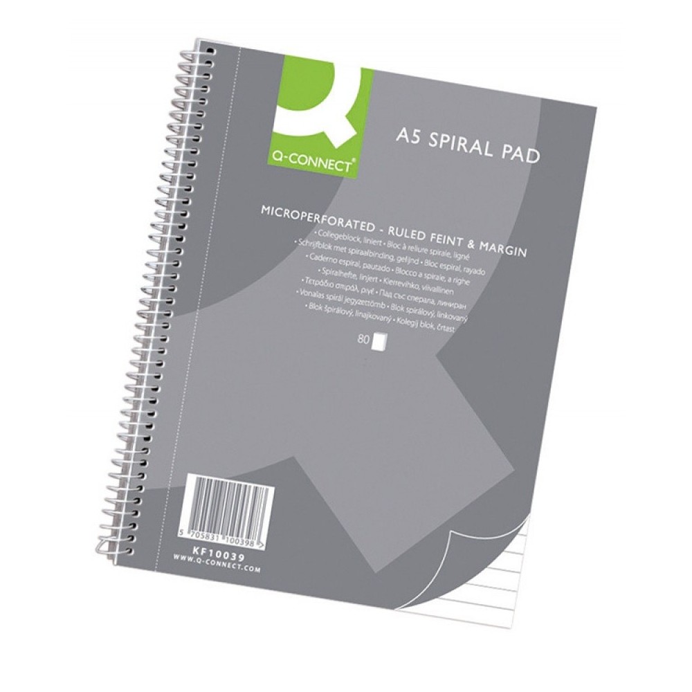 Caiet cu spirala, A5, 80 file - 70g/mp, 4 perf., coperti carton, Q-Connect - dictando