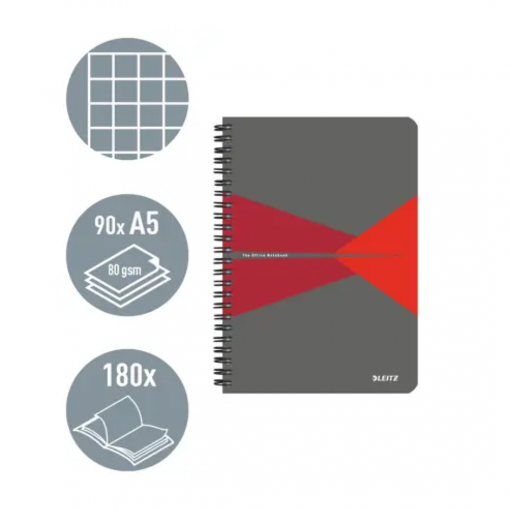 Caiet de birou LEITZ Office, PP, certificare FSC, reciclabil, A5, 90 coli, cu spira, matematica