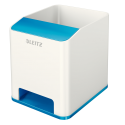 Suport instrumente de scris, LEITZ Wow cu amplificare sunet - albastru metalizat/alb