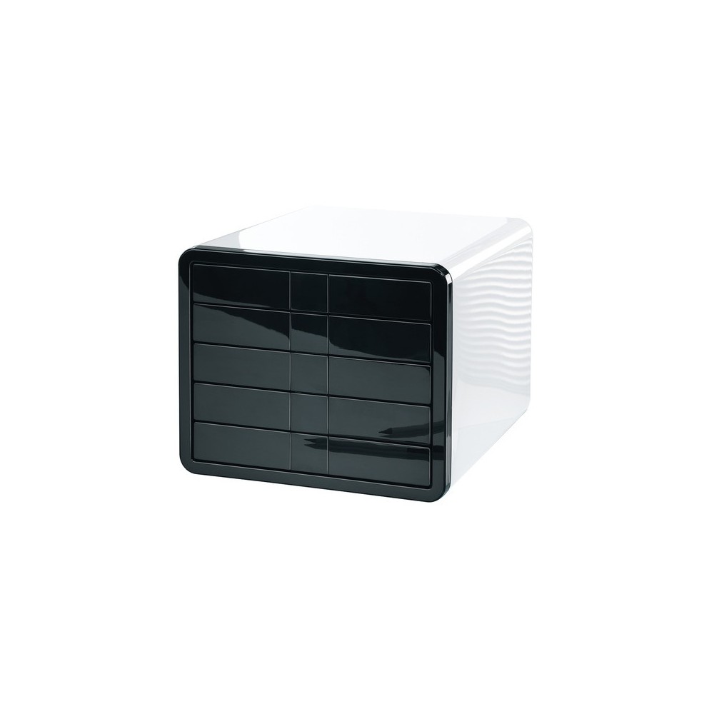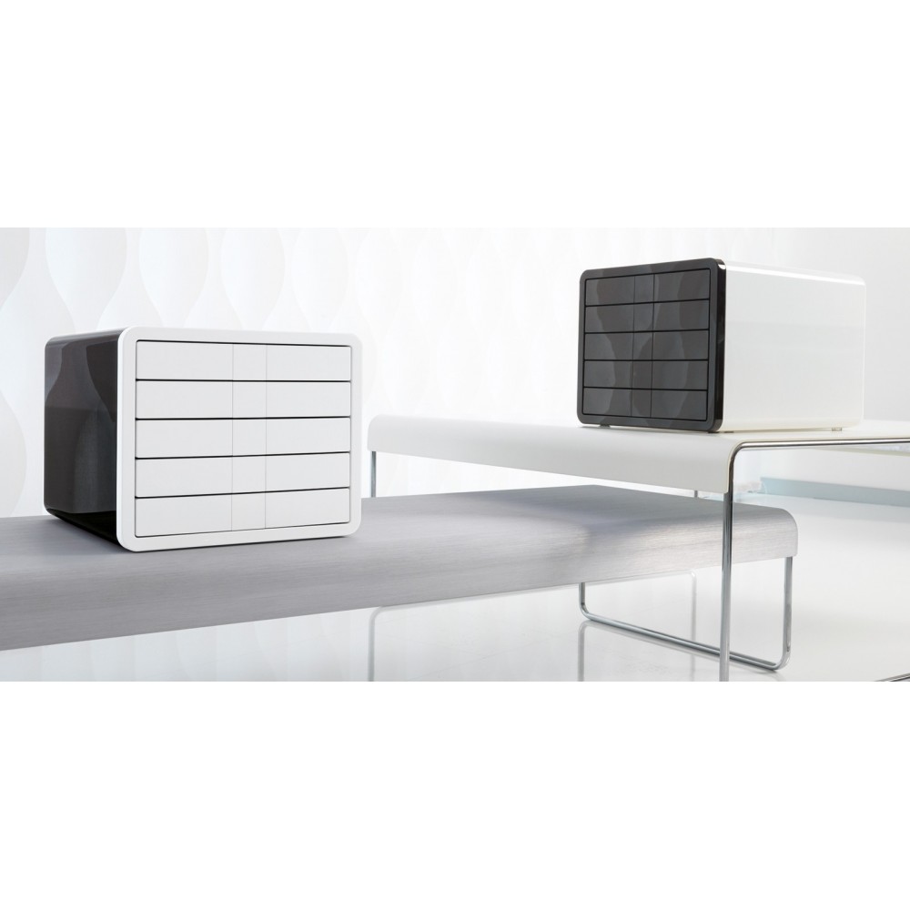 Suport plastic cu 5 sertare pentru documente, HAN iBox - alb lucios/negru lucios